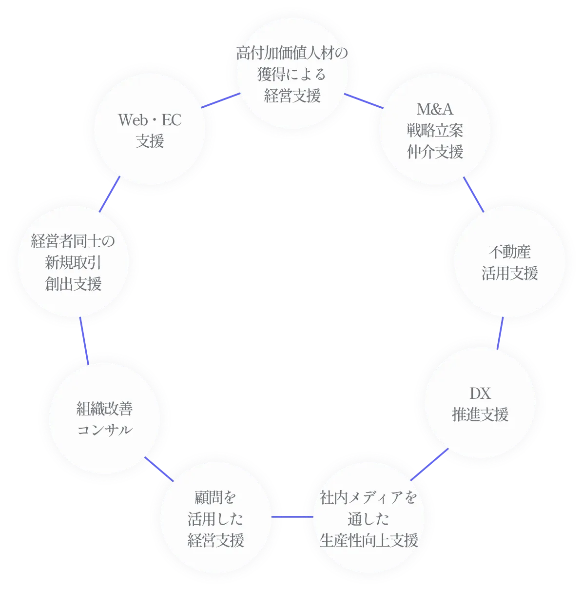 レイスグループのソリューション領域は非常に幅広く、経営顧問事業、スカウト・ヘッドハンティング事業をはじめとして、Webソリューション事業、ECソリューション事業、M&A支援事業など、現在25の事業を展開し、多面的な切り口から経営課題の解決を支援しています。
